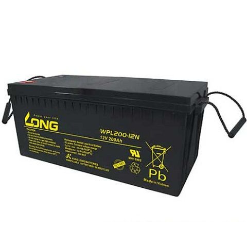 Bình ắc quy kín khí Long WPL200-12N, 12V-200Ah, Kính thước: Dài 522mm x Rộng 238mm x Cao 219mm, trọng lượng: 66.5kg, xuất xứ: Long - Việt Nam